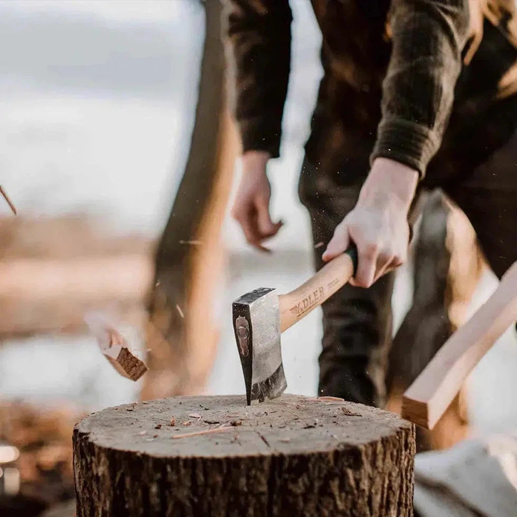 An all-purpose companion in the wilderness or for managing tasks closer to home. Ergonomic US-hickory handle with unique anti-slip paint for better grip. The head shape is the classic "Yankee" pattern. Each hatchet comes with a heavy-duty leather sheath and a cotton storage bag.
