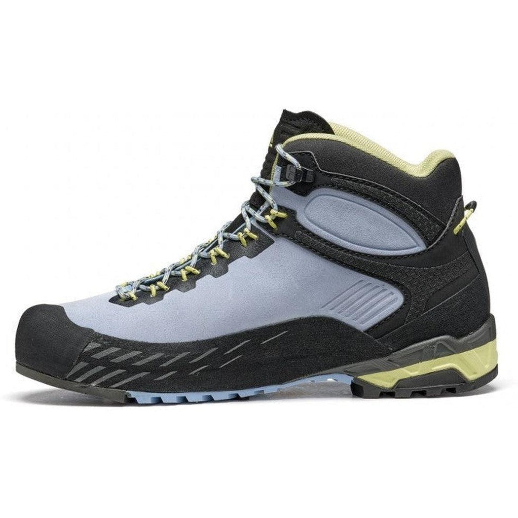 It presents a water-resistant suede upper and the Gore-Tex Extended Comfort Footwear lining which guarantees waterproofness and breathability. The mono-density thermoformed Eva midsole guarantees the best support, stability and cushioning. The Asolo/Vibram AG outsole features a self-cleaning design and excellent climbing area, it also uses the MegaGrip compound which offers excellent grip in dry and wet terrain. To complete the model the Pu rand all-around for additional protection, the cordon lacing system and the thermo-shaped toungue for a fast and precise fit.