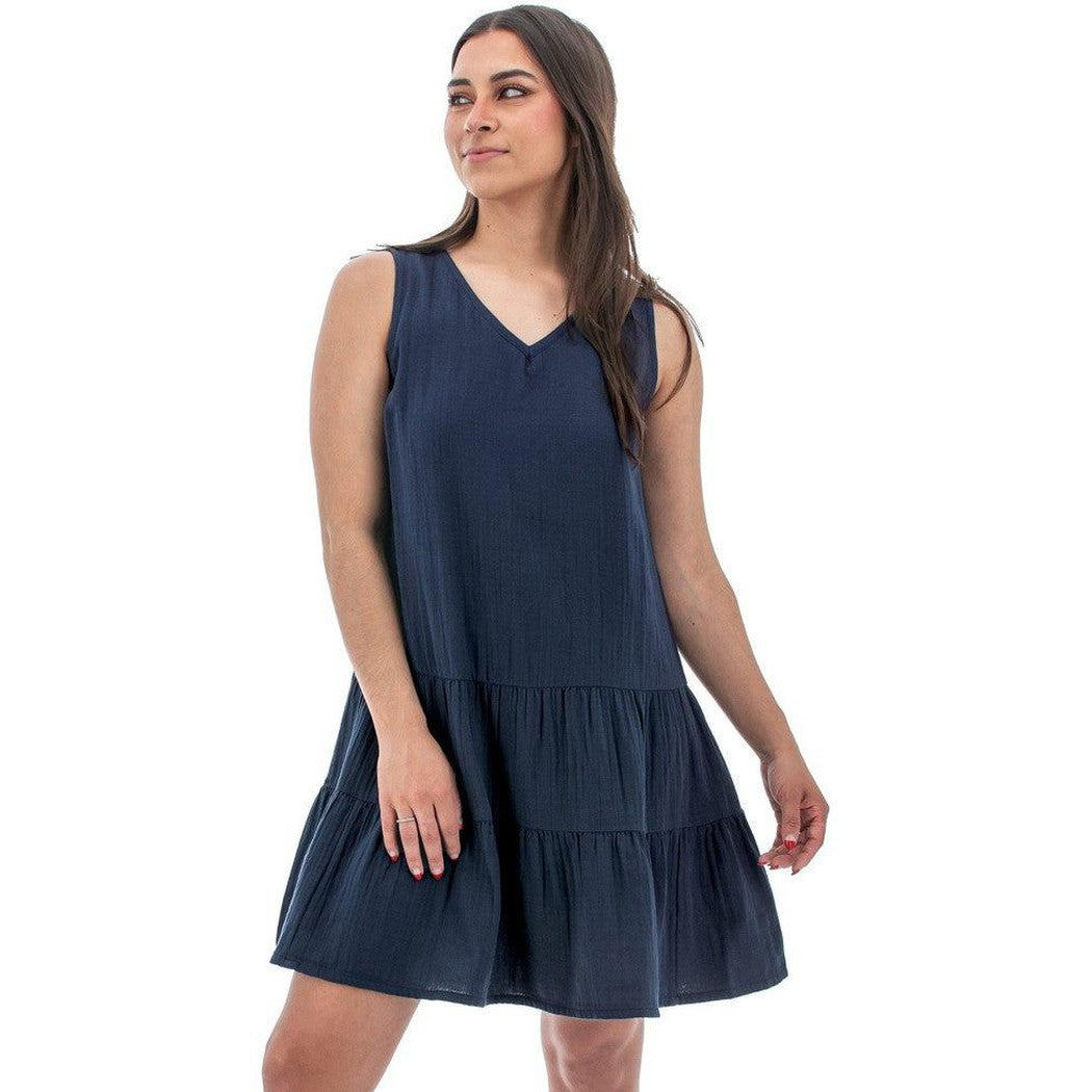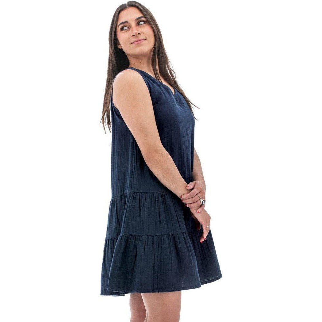 The Fair Trade Certified™ Kelford Dress is a fun way to support sustainable fashion. Made from 100% organic cotton, this dress has a lower impact than its conventional counterparts. Crafted into a gauze fabric, this dress feels luxurious with incredible softness and solidness while remaining light as air. A modest V-neck and wide, bra-friendly straps are balanced with a tiered skirt that bounces and moves joyfully. You will be tempted to twirl and spin about in this. We love this dress for casual summer days and to use as a beachy coverup that can hold up for dinners.