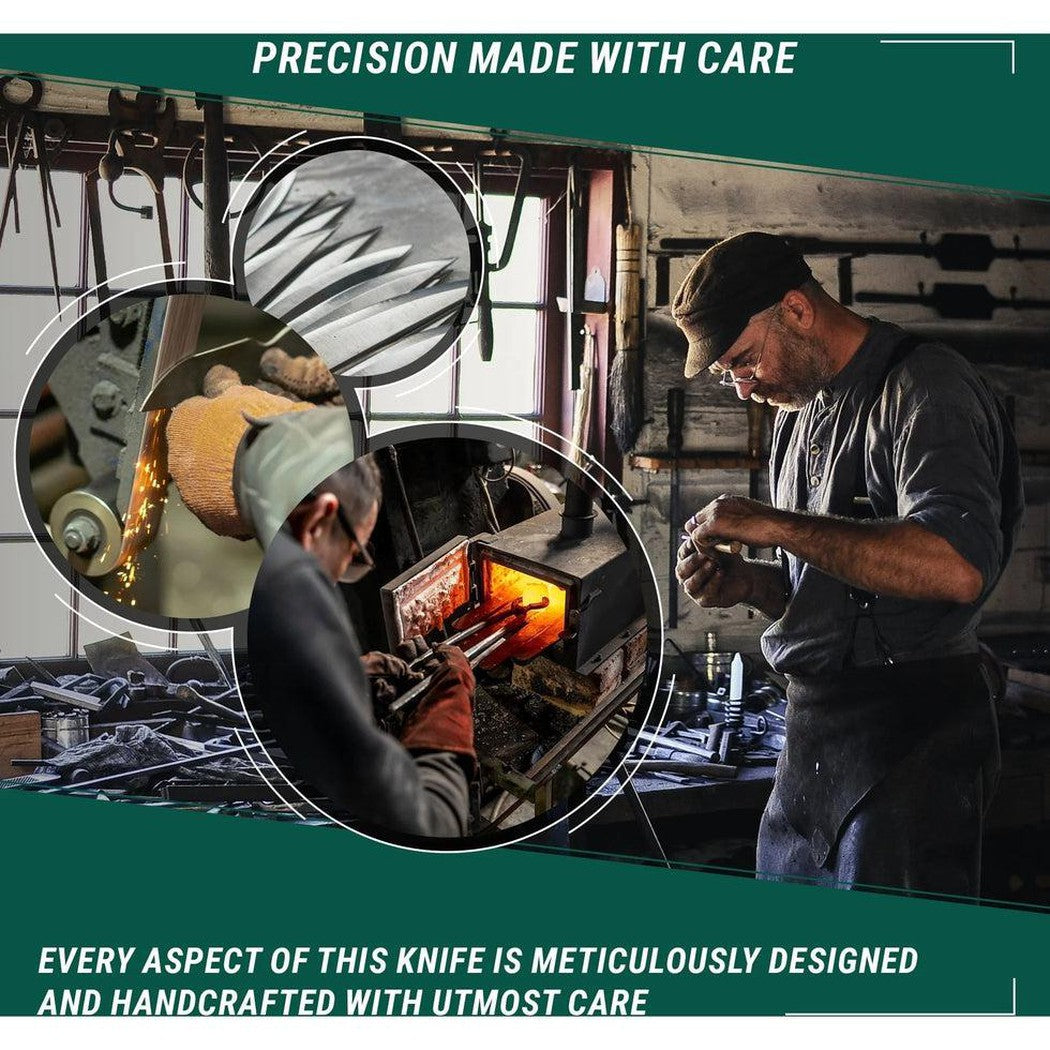 At the heart of the BSH5 lies its formidable blade, forged from 1066 high-carbon steel boasting a remarkable hardness of 58-60HR. This exceptional steel ensures that the edge retains its sharpness even under the harshest conditions, making it a reliable companion for all outdoor pursuits. To shield the blade from the elements, we have applied a bluing technique – a sleek black oxide coating that effectively protects against rust and corrosion.