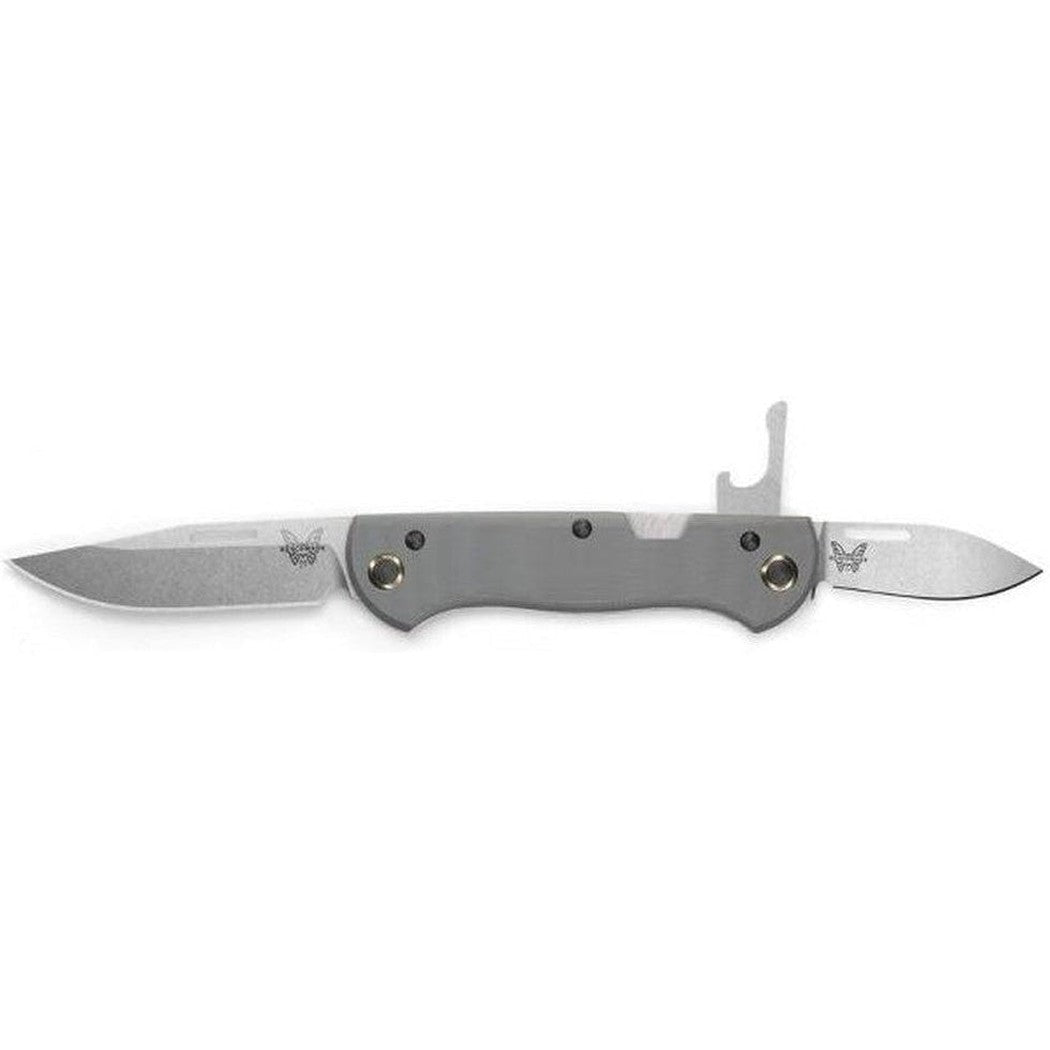 A modern take on a classic knife pattern. The 317 WEEKENDER® is a Benchmade redux of a traditional slip-joint multi-blade pocketknife tailored for your favorite weekend adventures. Featuring CPM-S30V steel, the WEEKENDER® boasts a clip-point main blade, a smaller utility drop-point blade, and a folding bottle opener – everything you need to complete your camp chores and enjoy a cold one by the fire. From whittling wood to preparing the day’s catch, the 317 WEEKENDER® is an urban-friendly, campsite-ready jack of all trades.
