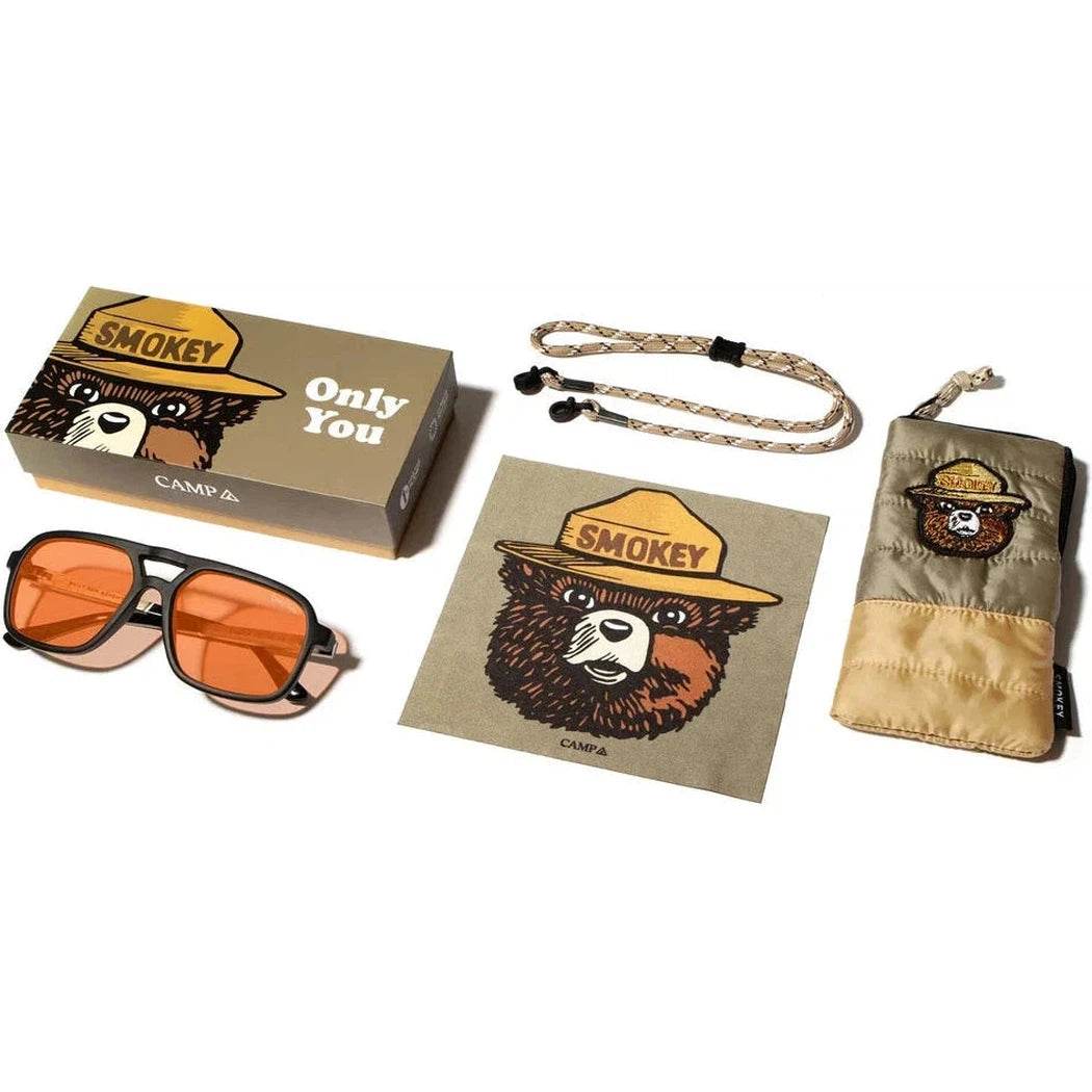 Part of our Smokey Bear Collection, this limited edition Glacier frame is inspired by the iconic mascot of wildfire prevention. Crafted from sustainable plant-based bioplastic, each pair features laser engraved wood accents, Smokey's hat emblem on the temple tips, and the "Only You" tagline engraved on the polarized lenses. Every bundle includes a custom Smokey Bear sleeping bag accessory case and cleaning cloth, and a handy paracord eyewear retainer. In partnership with the U.S. Forest Service, a portion of every sale goes towards wildfire prevention.