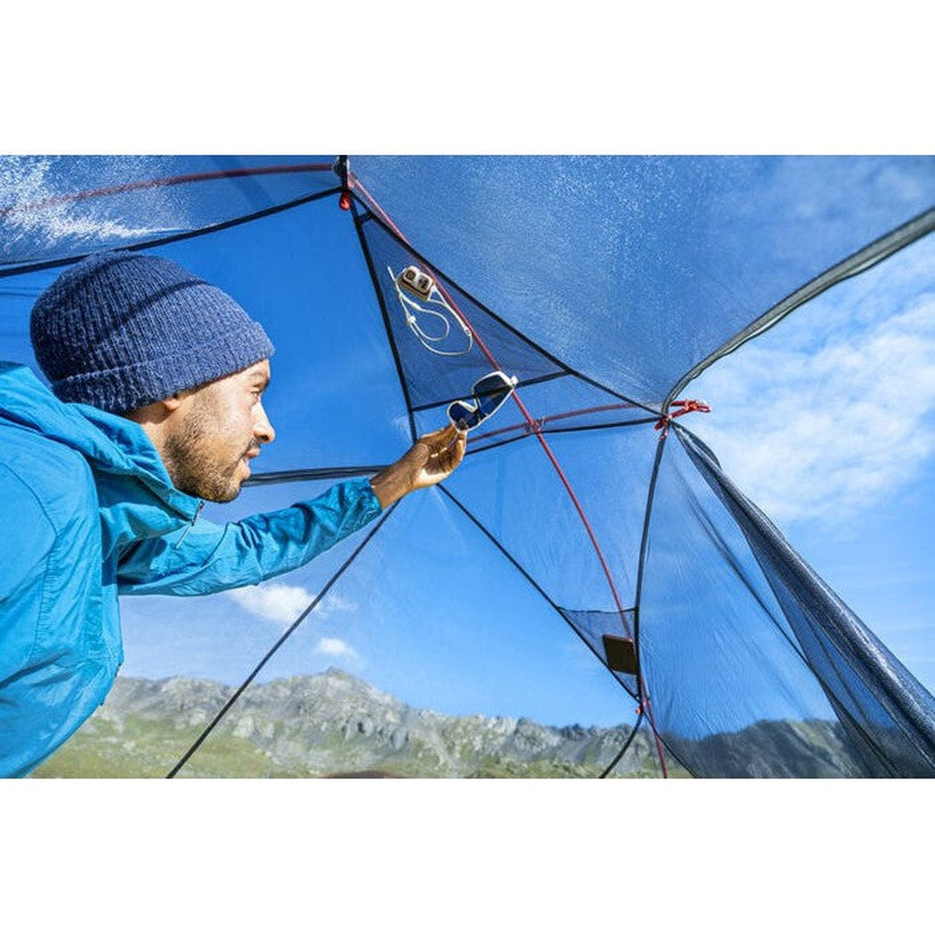 The Inside: Half a pound (226 g) lighter than the previous FreeLite, it still has the true rectangular floor (no foot taper like most other tents) and 39 inches (1.00 m) of headroom, 3 inches more than before. The micromesh tent body provides excellent ventilation (and stargazing) and has a waterproof bathtub-style floor to protect from the elements. Two no-curve tent doors keep you from having to crawl over your partner in the middle of the night, and feature zippers that are easy to use with one hand. They also zip closed to a single point so you always know where to open the door, even in the dark. New tech-friendly pockets feature cable ports at the corners for headphone and charging cords. Overhead gear loft pockets are perfect for headlamps, sunglasses and other quick-access items.