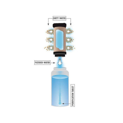 Get the added viral protection that's critical in popular wilderness areas and developing countries with this comprehensive purifier and microfilter system. The MiniWorks® Microfilter-our best-selling filter for demanding conditions-utilizes a ceramic/carbon element to filter out waterborne bacteria and protozoa, as well as particulate, taste and odors at 1 liter per minute. When viruses are a concern, the chlorine-based Aquatabs® purification tablets add viral defense. Together they provide the most reliable water possible in a compact, lightweight system that's great for backpacking and international travel.