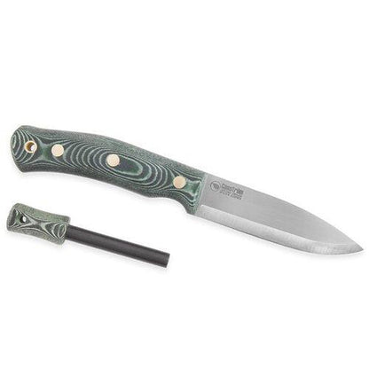 - Hand-finished green micarta handle with an ergonomic design that gives a great grip.