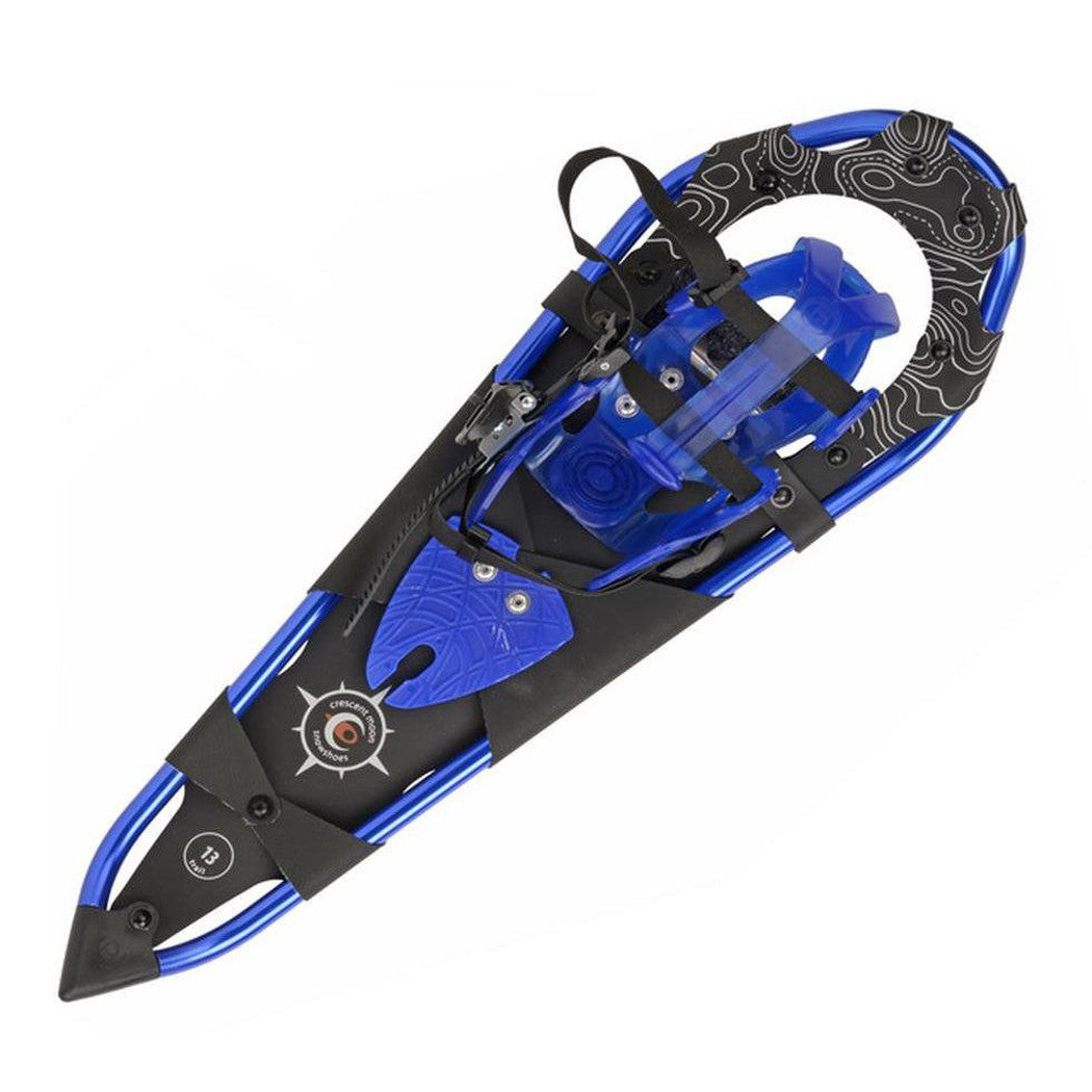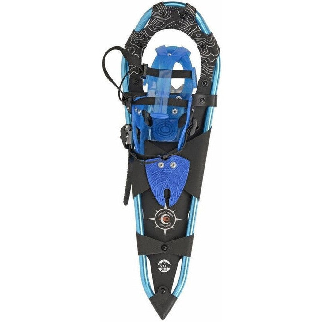 Allows for women up to 165lbs and foot sizes less than 12 (W). It's lightweight, very easy to maneuver and features a binding system so well designed and functional it has been recognized as the "best" snowshoe on the market by most outside magazines at some point during the last 22 years Crescent Moon has been making it. That's one small step for women, one giant snowshoe leap for women-kind. The Vail 24.5 is a frame which has been bent with a very steep nose and tapered tail. Because of this unique teardrop shape, with each step, the shoes will clear away from themselves within the distance of your own natural stride without forcing you to adapt a new walking style, like traditionally shaped snowshoes do. The Vail 24.5's are exceptionally responsive, lightweight, and comfortable on any trail.