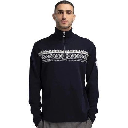 The Dalestølen merino wool sweater is a sportier, lighter version of our classic Cortina 1956 sweater. Made of 100% skin soft merino wool, the Dalestølen features an updated version of the Cortina pattern and a high neck with a quarter zip.