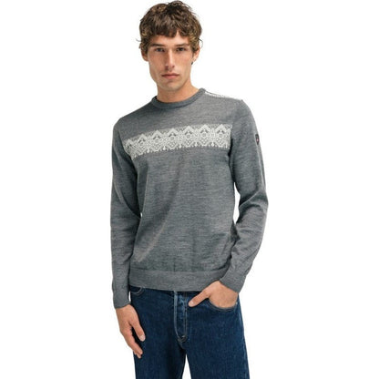 A lightweight and sporty wool sweater with patterns from our classic Fiemme sweater. The sweater has a round neck and is knitted in 100% soft merino wool. A versatile sweater that can be worn at all manner of occasions, from smart to casual to sporting activities.