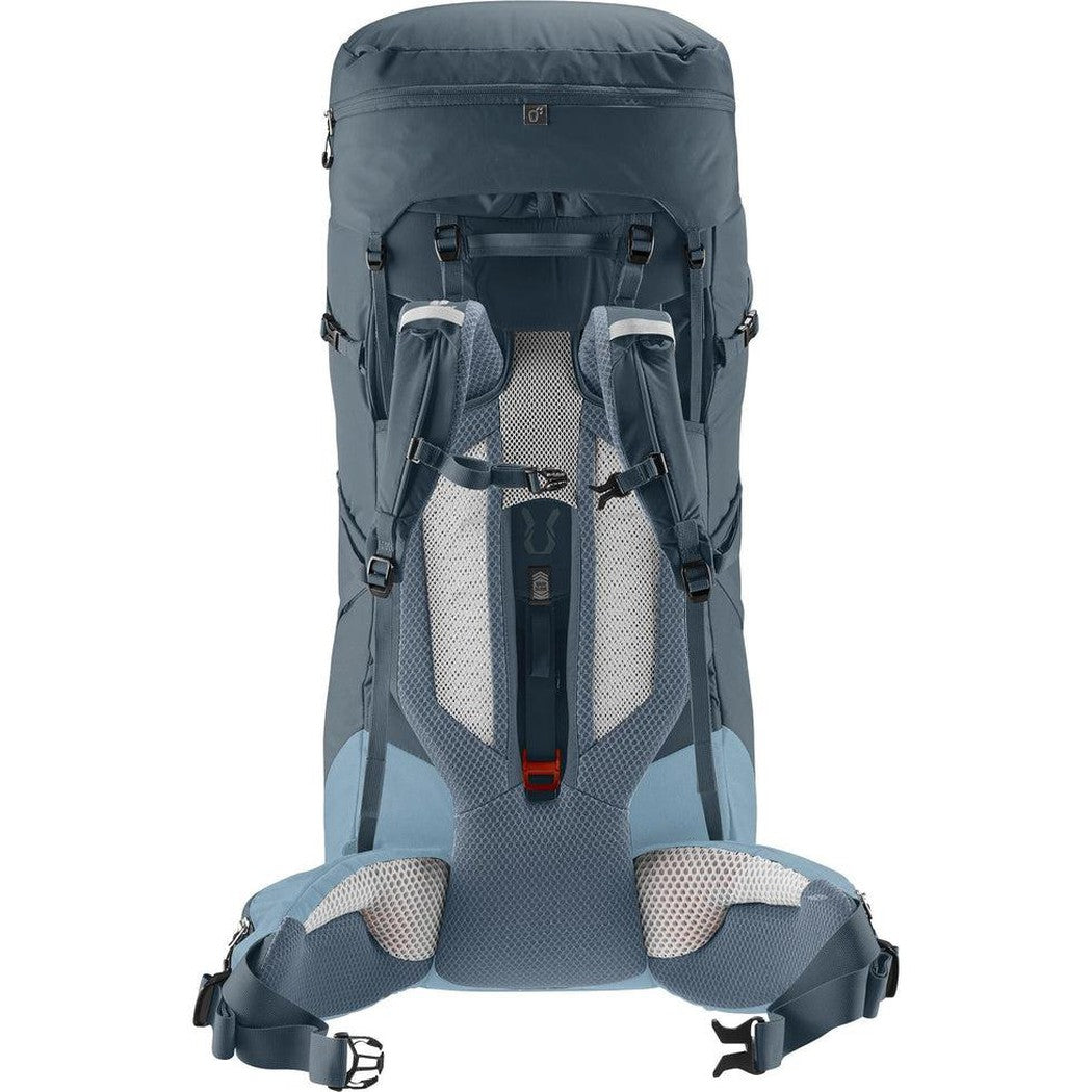 Its superior carry comfort is down to the deuter Aircontact back system with Air Spacer mesh and a large ventilation channel, plus ergonomic ActiveFit shoulder straps and an adjustable sternum strap. The Y-shaped frame, mobile hip fins and ergonomic lumbar pad combine to distribute the load effectively. A full-length, J-shaped zipper on the front makes contents easy to locate lower down in the main compartment. Hip fin pockets provide easy storage and keep items within reach. Stretch mesh side pockets keep bottles close at hand for hot days on the trail.