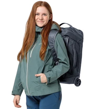 A sustainably made, bluesign accredited product, this duffel roller bag is made from 50% recycled body fabric, making it perfect for bigger adventures. Easy to maneuver and with stowable backpack-style shoulder straps, it has plenty of space for all your gear. With a secure, lockable zipper on the main compartment, spacious internal compartments and an external pocket, this roller is well organized. Made from tough, water-repellent TPU material that protects contents from dirt and moisture.
