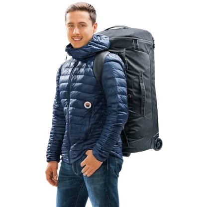 A sustainably made, bluesign® accredited product, this duffel roller bag is made from 50% recycled body fabric, making it perfect for bigger adventures. Easy to maneuver and with stowable backpack-style shoulder straps, it has plenty of space for all your gear. With a secure, lockable zipper on the main compartment, spacious internal compartments and an external pocket, this roller is well organized. Made from tough, water-repellent TPU material that protects contents from dirt and moisture.