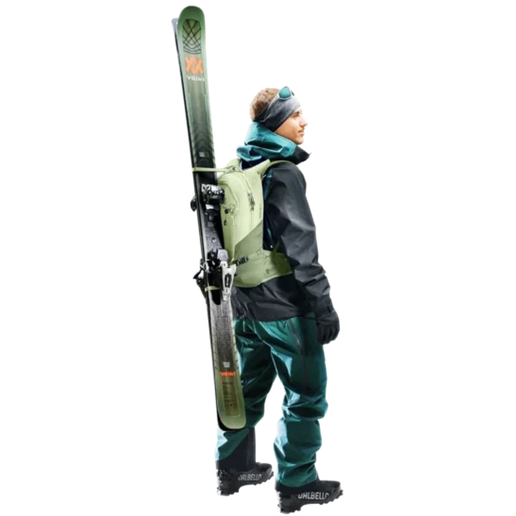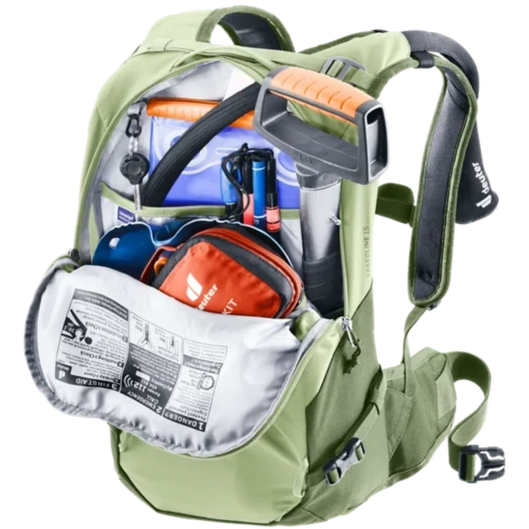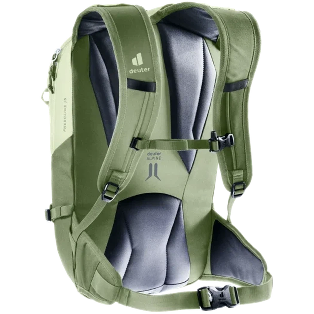 This all-mountain backpack is equipped with the deuter Alpine back system for a comfortable, snug fit that keeps the weight close to your center of gravity for full load control. An ice axe/pole strap doubles as a ski strap for diagonal attachment across the front of the pack. Side compression straps can be used to strap a snowboard to the front. And quick access to the main compartment and avalanche equipment compartment makes the Freecline a practical companion for exploring on- and off-piste.