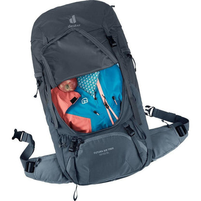Long distance hikes are exactly your thing? Then the Futura Air Trek SL, which offers maximum comfort on long tours, is your ideal companion. The VariSlide system allows infinite adjustment to any body size. The moveable VariFlex ECL hip fins with ergonomic padded inserts make for comfortable wearing. The Aircomfort Sensic mesh back system keeps you optimally ventilated. In order to offer you maximum space and organization possibilities for your equipment, there is a side bellows pocket and a height-adjustable lid (+10 L) in addition to the large front access.