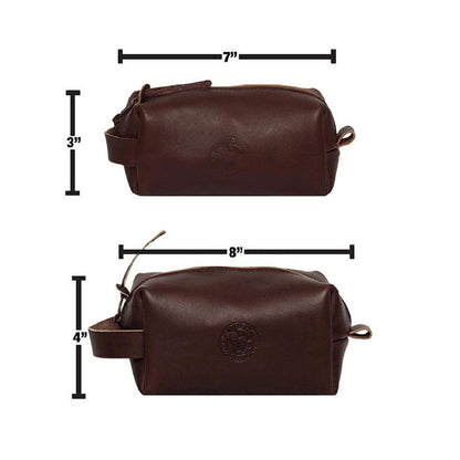 The Medium Travel Kit Bag is just as handsome as it is functional. Handcrafted to be used for a lifetime of travel and everyday use. Proudly Made in the USA by skilled Duluth Pack craftspeople, the Medium Travel Kit Bag is crafted of premium American leather, a weatherproof zipper, and embossed with the iconic Duluth Pack logo. The Medium Travel Kit Bag by Duluth Pack will hold all of your essentials for a weekend trip to the cabin or a month abroad. Most popular as a cosmetic bag, shaving kit bag, or carry-all accessory. The Medium Travel Kit Bag is the largest size available in the Travel Kit Bag line handcrafted by Duluth Pack.