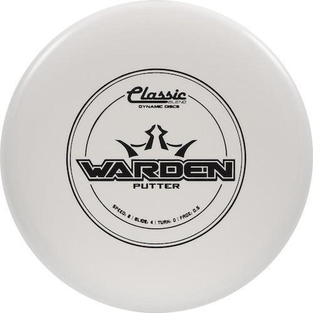 To bead or not to bead. That is the question. What could Dynamic Discs possibly do in the putter game to follow the Judge, the 2013 Disc of the Year? Introducing the Warden, Dynamic Discs' beadless putter. With an extremely smooth release and neutral flight, the Warden will come out of your hand easily and fly dead straight to the chains. With more glide than the Judge, it will stay in the air longer to help deflate those high scores. The Warden would like to see you now.Speed: 2 Glide: 4 Turn: 0 Fade: 0.5Max Weight: 176gAbout Classic Blend:Classic Blend is the perfect combination of grip and flexibility in the Classic plastic series. If Classic Soft is too soft and Classic is too hard, reach for the blend!