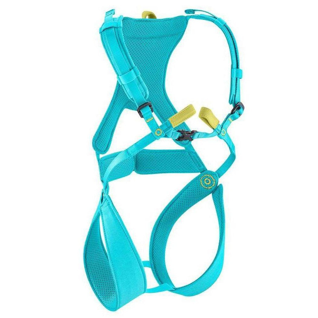 With this padded full body harness even young climbers and little mountaineers weighing up to 40 kg can enjoy a scramble. The stiff construction with the fixed leg loops makes putting the harness on much easier, and thanks to the two Slide Block buckles, the harness is quickly adjusted to the right size. The two large tie-in loops offer enough space for two carabiners clipped in opposite directions (e.g. for top-roping). What makes the Fraggle truey special is that as the child gets bigger, the tie-in point moves and the harness "grows" as well. Besides, the Fraggle is fully manufactured in compliance with the strict bluesign® system requirements, in order to protect the environment, resources and children.