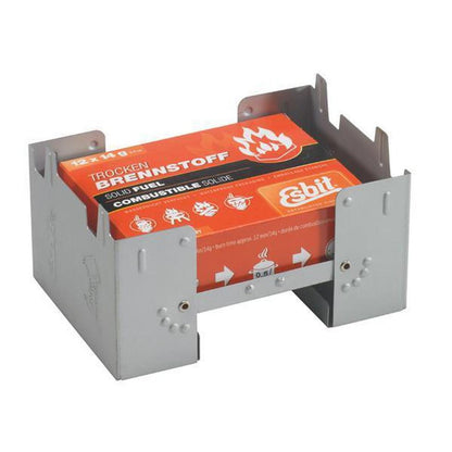 - Includes 6 Esbit 14 g solid fuel tablets (small) or 12 Esbit 14 g solid fuel tablets (large). Extra solid fuel tablets store inside stove.