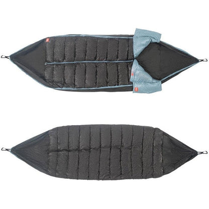 Integrated sleeping bag technology provides the perfect combination of relaxation and warmth. Don't worry about a sleeping bag bunching up, or dealing with an under/over quilt. This innovative product gives you range of motion while staying cozy in a blanket of comfort.