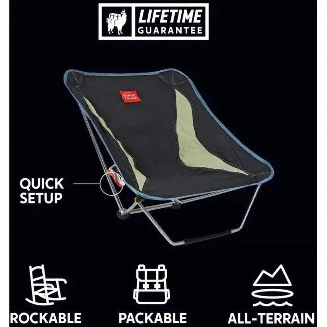 This three-legged, convertible chair is a perfect hybrid of our Monarch and Mantis chairs. Its removable front foot can be used to give the chair stability like the Mantis, or removed to give it the hillside rocking functionality of the Monarch. Derived from the Alite Designs Mayfly chair.