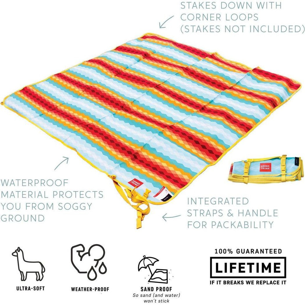 This waterproof picnic blanket is lightweight, durable, and will keep your belongings and bottom dry when sitting on the wet ground. Use the attached straps and handle to roll it up and carry to your destination, and use the built in corner loops to stake it down when it gets windy. It's easy to wash and rolls up tight, so take a seat and stay a while.