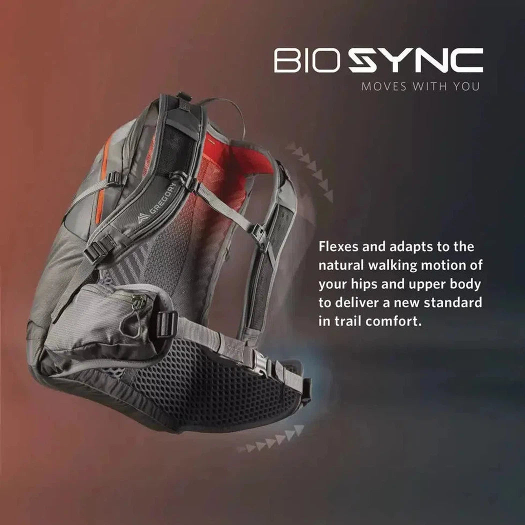 • BioSync flexible hipbelt and shoulder harness that stretch and move with the natural motions of your body.