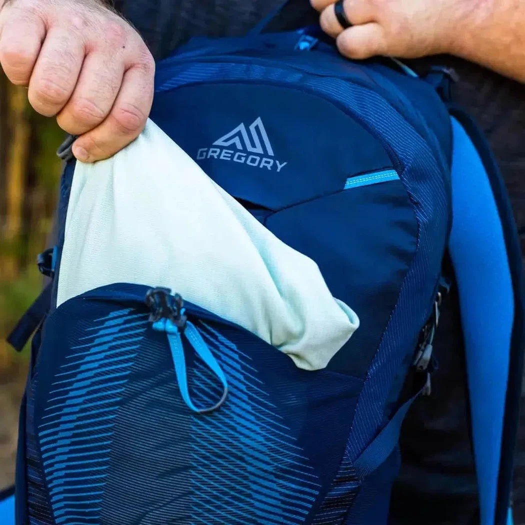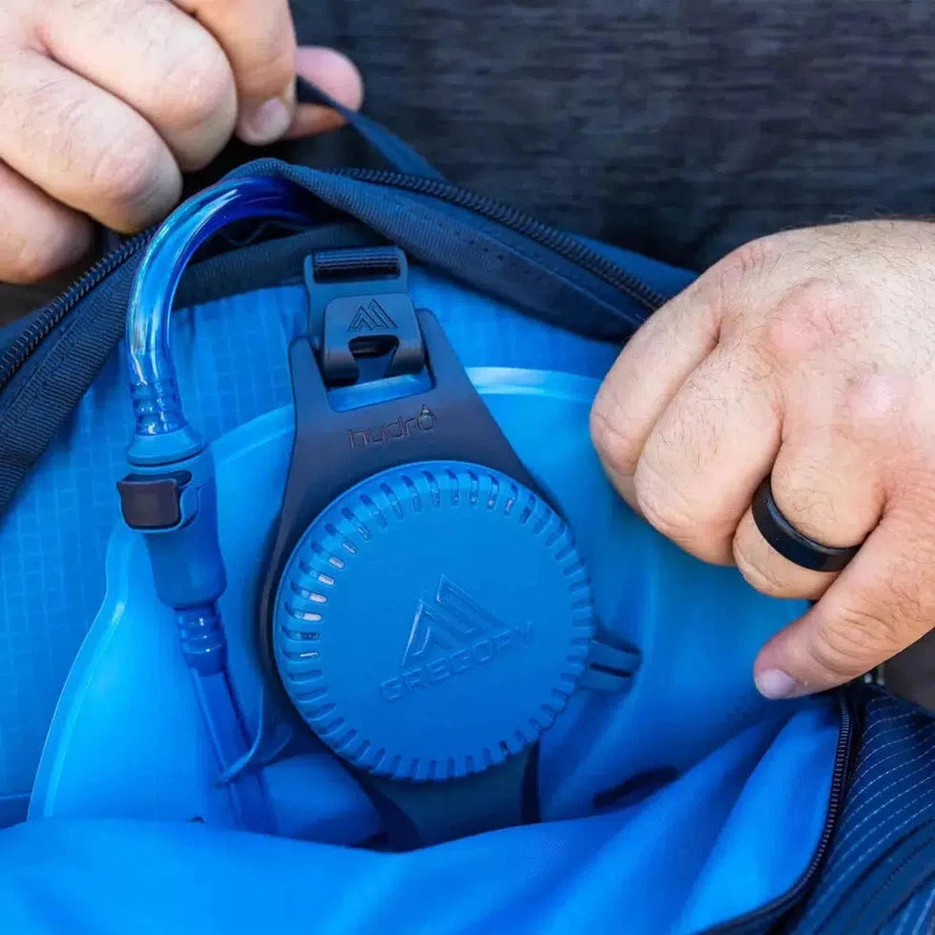 • Independent zippered pocket with SpeedClip hydration hanger, compatible with Gregory's Hydro Reservoirs (reservoir not included).