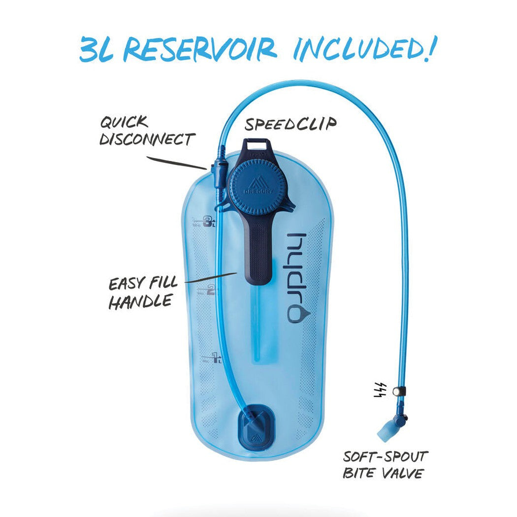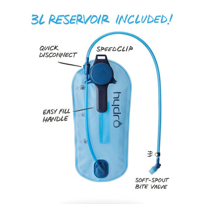 • Included 3L, quick-drying Hydro reservoir in separated zippered compartment helps you stay hydrated on the move.