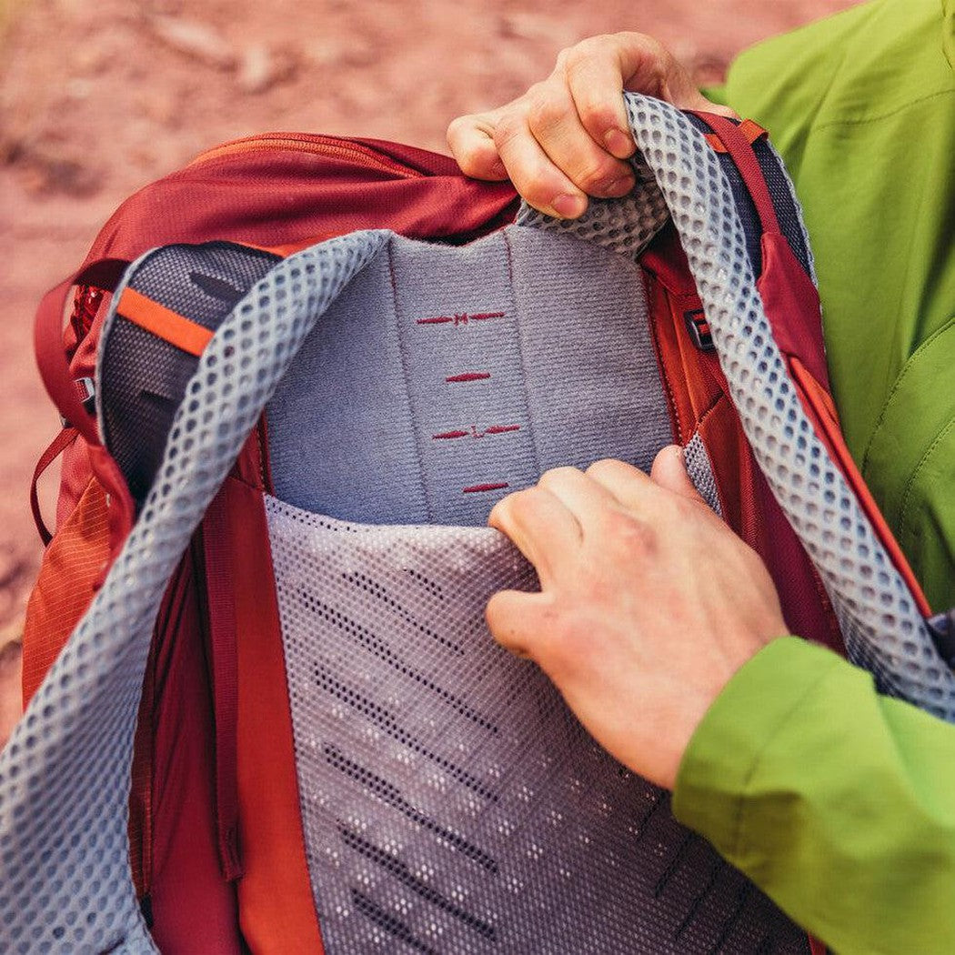 Hybrid suspension featuring Gregory's FreeFloat dynamic comfort cradle lower back system and breathable 3D foam upper backpanel support