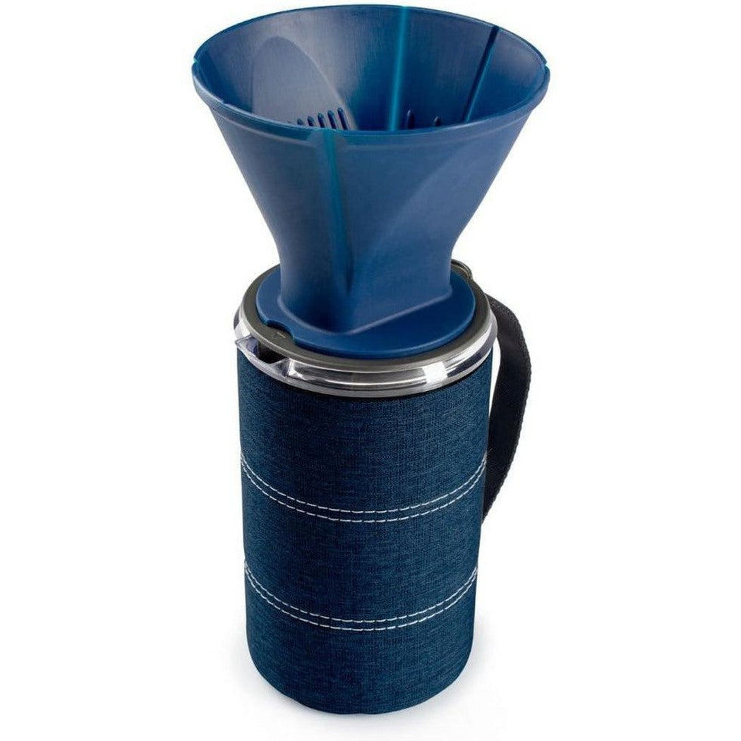 - Double-walled, insulated lid and ballistic nylon-wrapped cozy hold in temperature while brewing and serving.