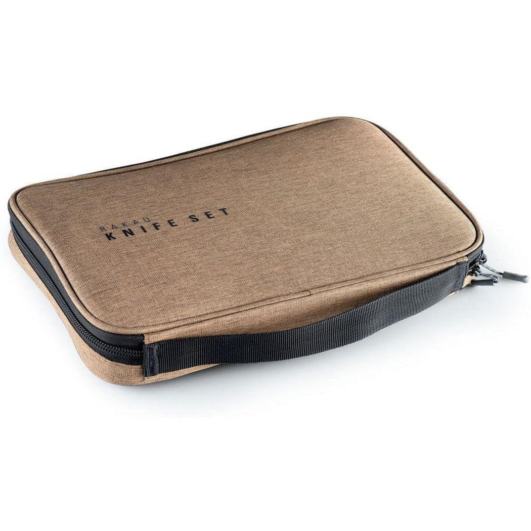 A cut above them all. Our Rakau Knife Set earns its GSI Eco Badge as it leads the way when it comes to materials and manufacturing. The Gourmet 3-pc sustainably sourced wood-handled knife set includes a compact sustainably sourced wood bamboo cutting board with a juice gutter, a recycled microfiber towel, and a soap bottle. The stainless steel knife set is designed to last for generations. The Chef knife has a Santoku blade with Granton scallops for gracefully thin slicing. The serrated bread knife will tackle the hardest baguette crusts with laser precision, and the paring knife will deftly maneuver through crisp fruit cores. The set is contained in a convenient recycled PET cloth case with an integrated knife sheath to protect and safely manage the blades.