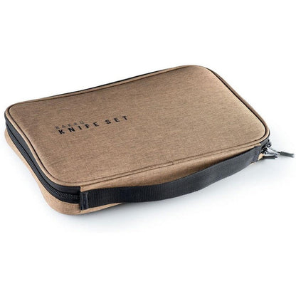 | Includes | 3.5" Paring Knife with Sheath, 6" Santoku Chef's Knife with Sheath, 6" Serrated Bread Knife with Sheath, Bamboo Cutting Board, Dish Cloth, knife sharpener, rePET Cloth Case |