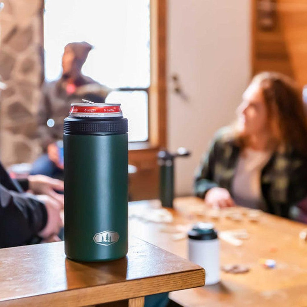 Whether camping in the rugged outdoors or just relaxing in the wilderness of your own backyard, this rugged cooler will keep your favorite canned drink deliciously cold.