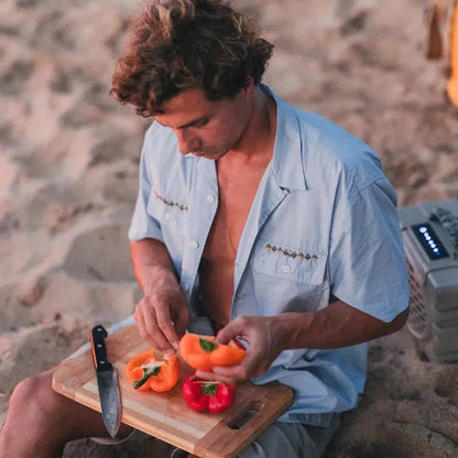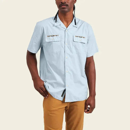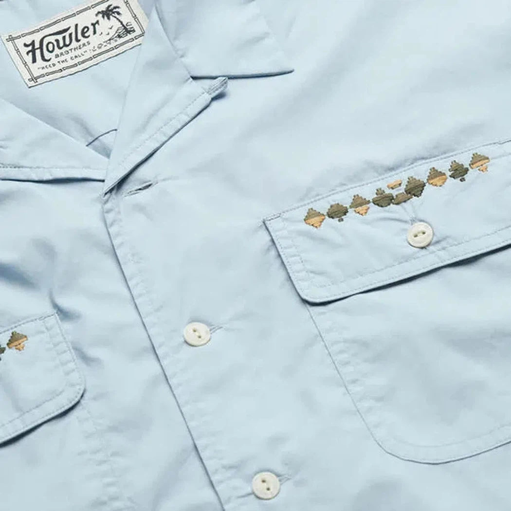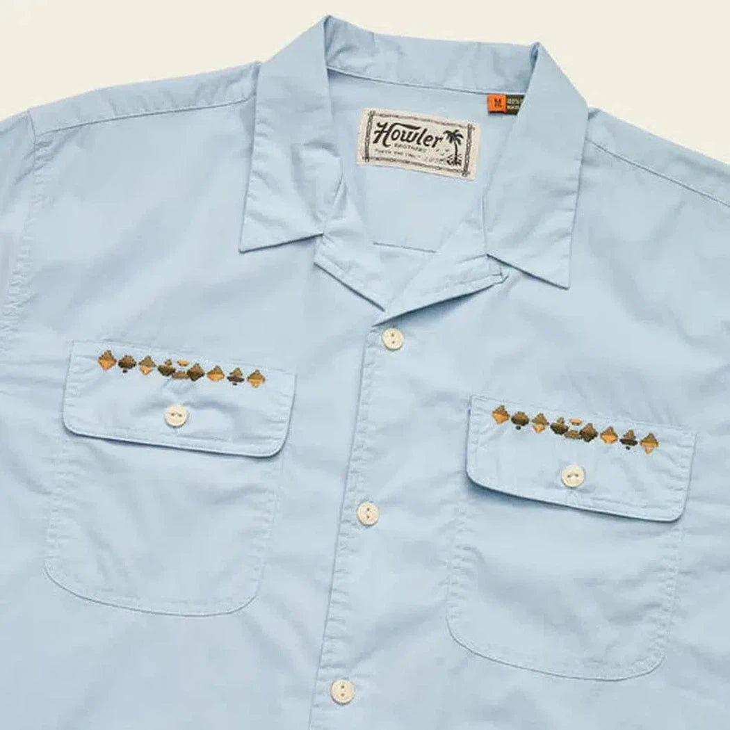 Our latest take on the classic camp collar design is constructed of lightweight cotton with dazzling geometric front-pocket and collar embroidery. No matter if you live right on the beach or 1000 miles inland, the Shores Club Shirt comes equipped with all the benefits of a full fledged membership with no application required. Join the club.