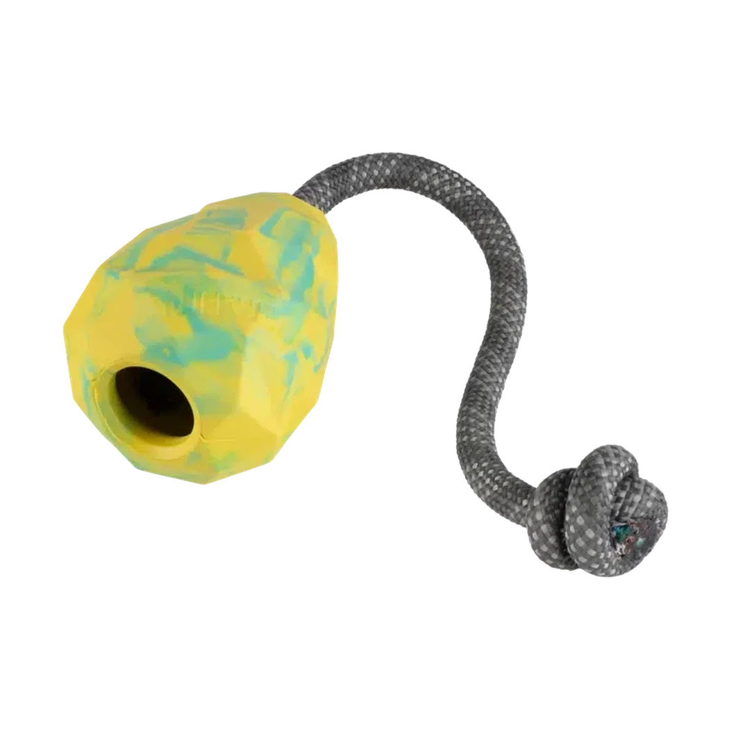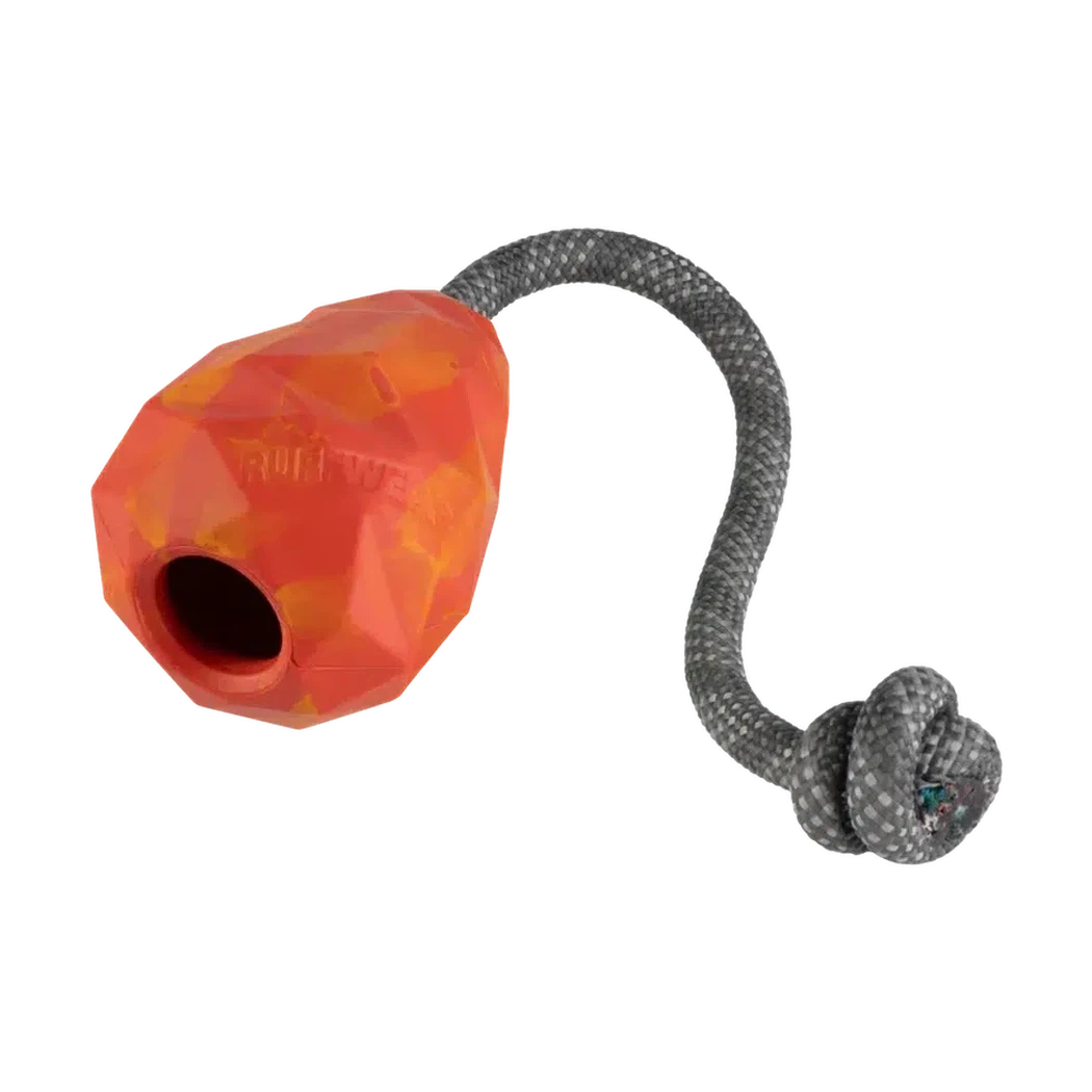 Tug, throw, fetch, repeat: The Huck-a-Cone was inspired by rewarding play between avalanche dogs and handlers during training. We took our popular Gnawt-a-Cone™ and added a knotted rope handle, providing excellent grip during training drills and rewarding play. The natural latex rubber toy is tough enough for even the most persistent canines.