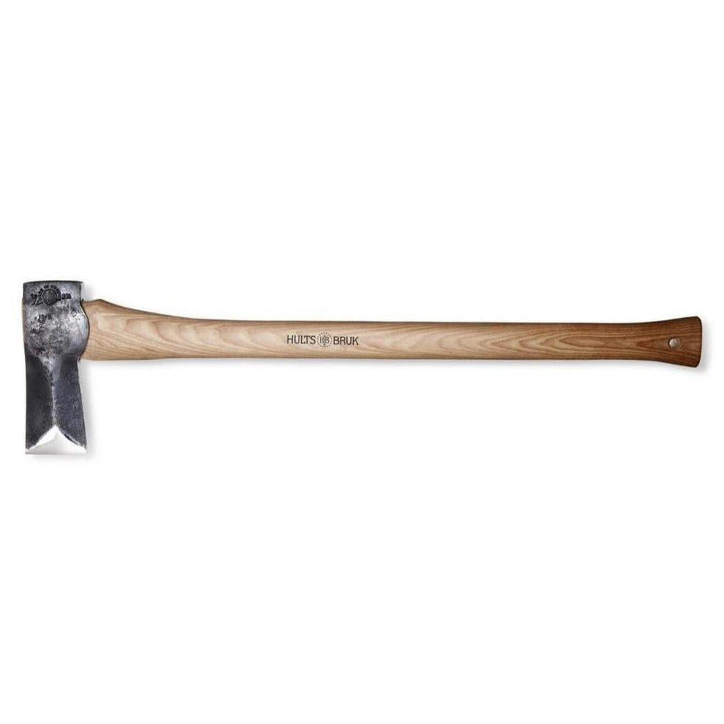 The shape of the head, combined with slightly convex grinding, splits the wood. The Sarek axe has a long and straight handle made from American hickory, to gain maximum speed and control when splitting logs. It is hand forged and made from Swedish quality steel. The steel head is struck multiple times to increase density and durability.