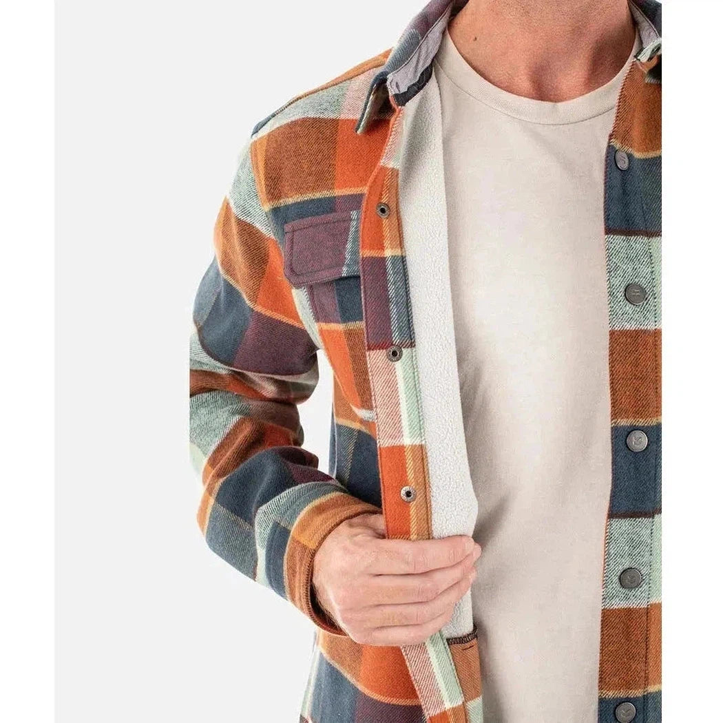 The Hull Jacket features our super soft polar fleece which is bonded to the mid-weight durable Arbor flannel. The Hull boasts metal engraved snaps, large double chest pockets with Otis Pillar flaps, scallop side-seams with contrast fabric detail, custom labeling at neck, inner-placket, and chest pocket.
