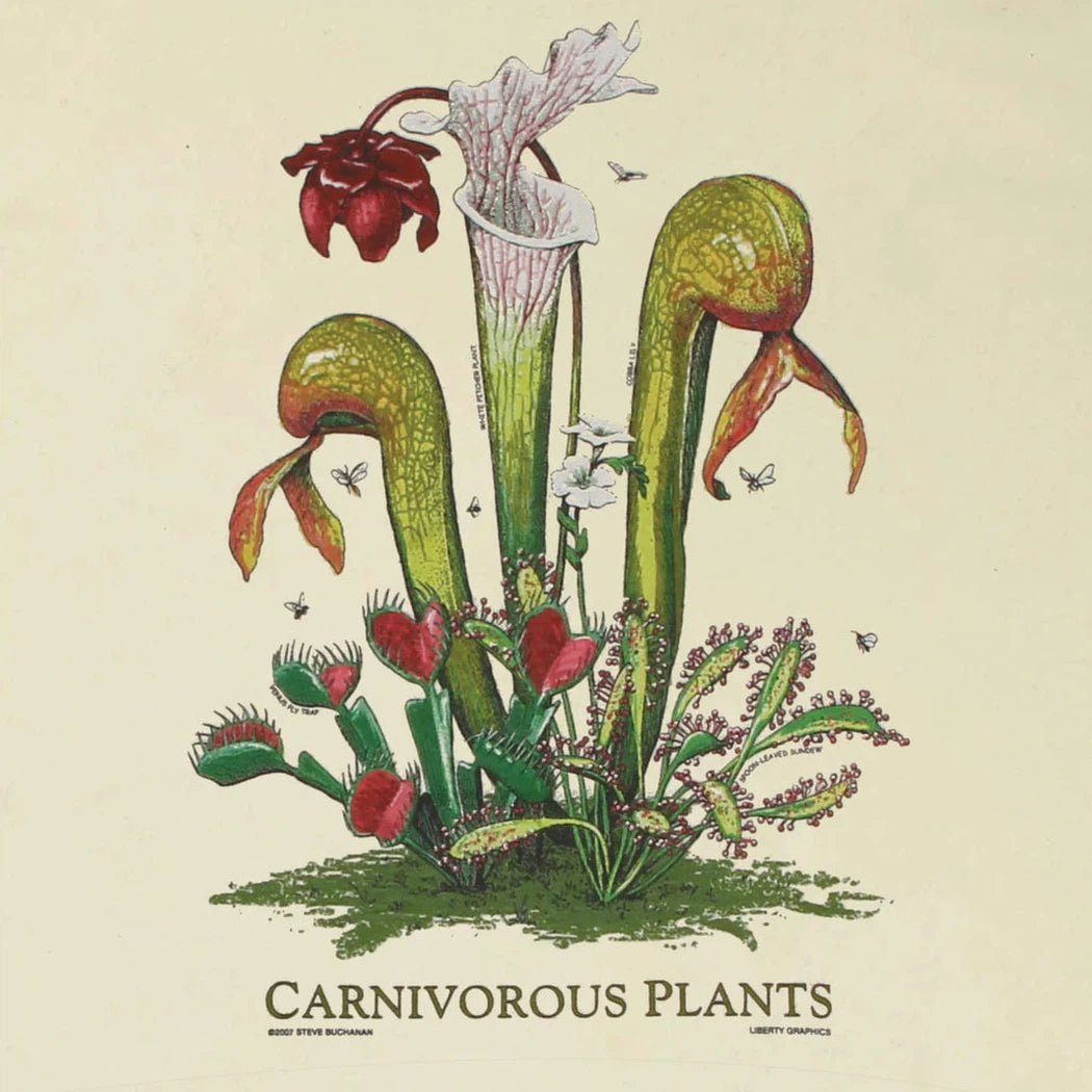 Liberty Graphics presents Carnivorous Plants printed on a 100% cotton Gildan heavyweight Adult t-shirt. Liberty Graphics prints t-shirts using 100% water-based ink for your comfort and our environment. Artist: Steve Buchanan.