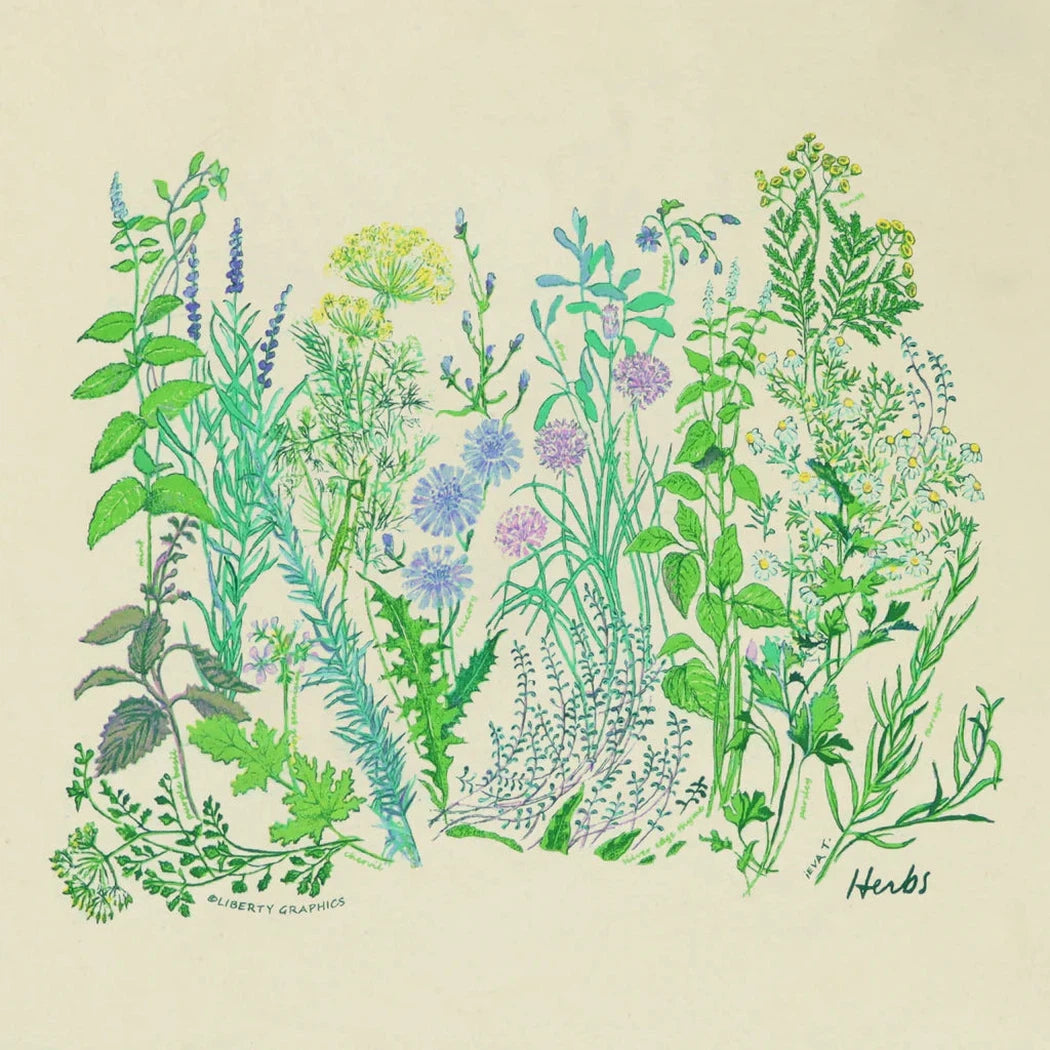 Liberty Graphics presents Herbs printed on a 100% cotton Gildan heavyweight Adult t-shirt. Liberty Graphics prints t-shirts using 100% water-based ink for your comfort and our environment. Artist: Ieva Tatarsky.
