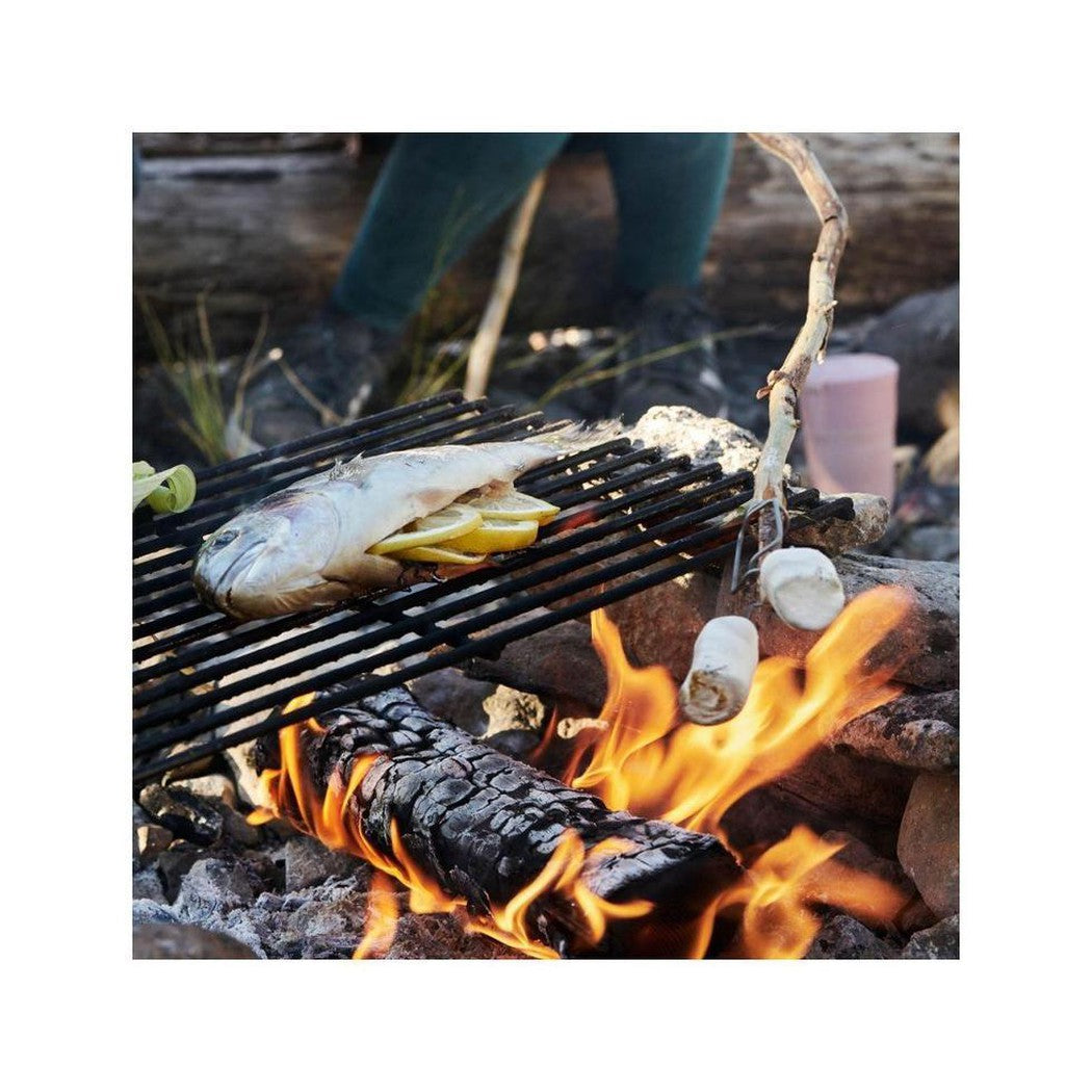 Grandpa´s FireFork is a nice tool for cooking your fire on a hot fire. Just add a stick (no need to cut fresh branches) then just add whatever you want to cook over the fire.