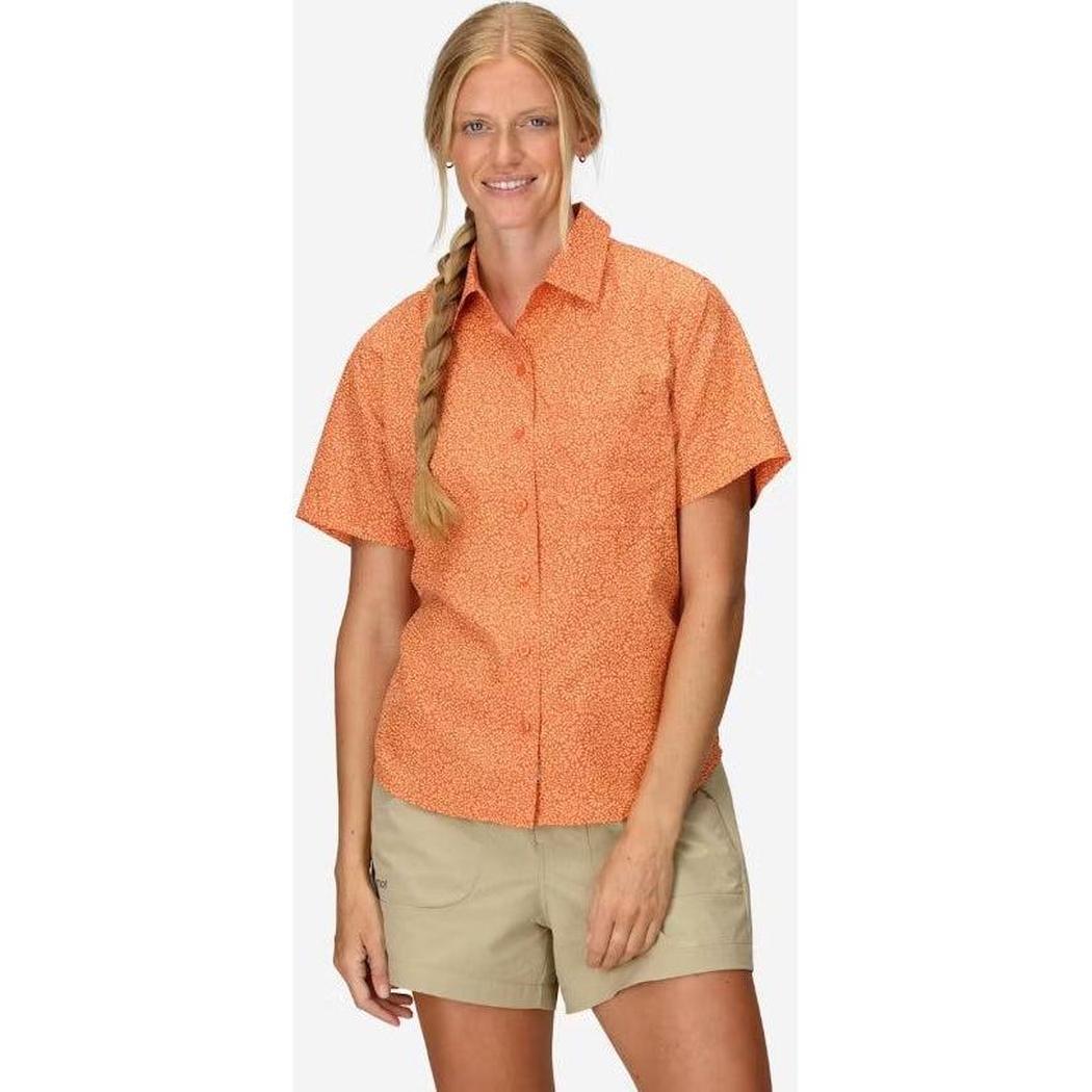 Score sun protection on the trail and style points at camp. This short-sleeved staple keeps you feeling as good as you look, thanks to UPF 40 sun protection and AirExchange performance fabric that dries quickly and breathes easily. Flat-felled seams boost durability and comfort for long days under the weight of your pack, while a single drop-in chest pocket stashes essentials like sunscreen, sunnies, and lip balm for long days outside. The straight hem is ideal for wearing untucked, whether you're scrambling up rocks or cooking up breakfast at camp, while breezy button-up ventilation helps you go with the flow for virtually any activity under the summer sun.