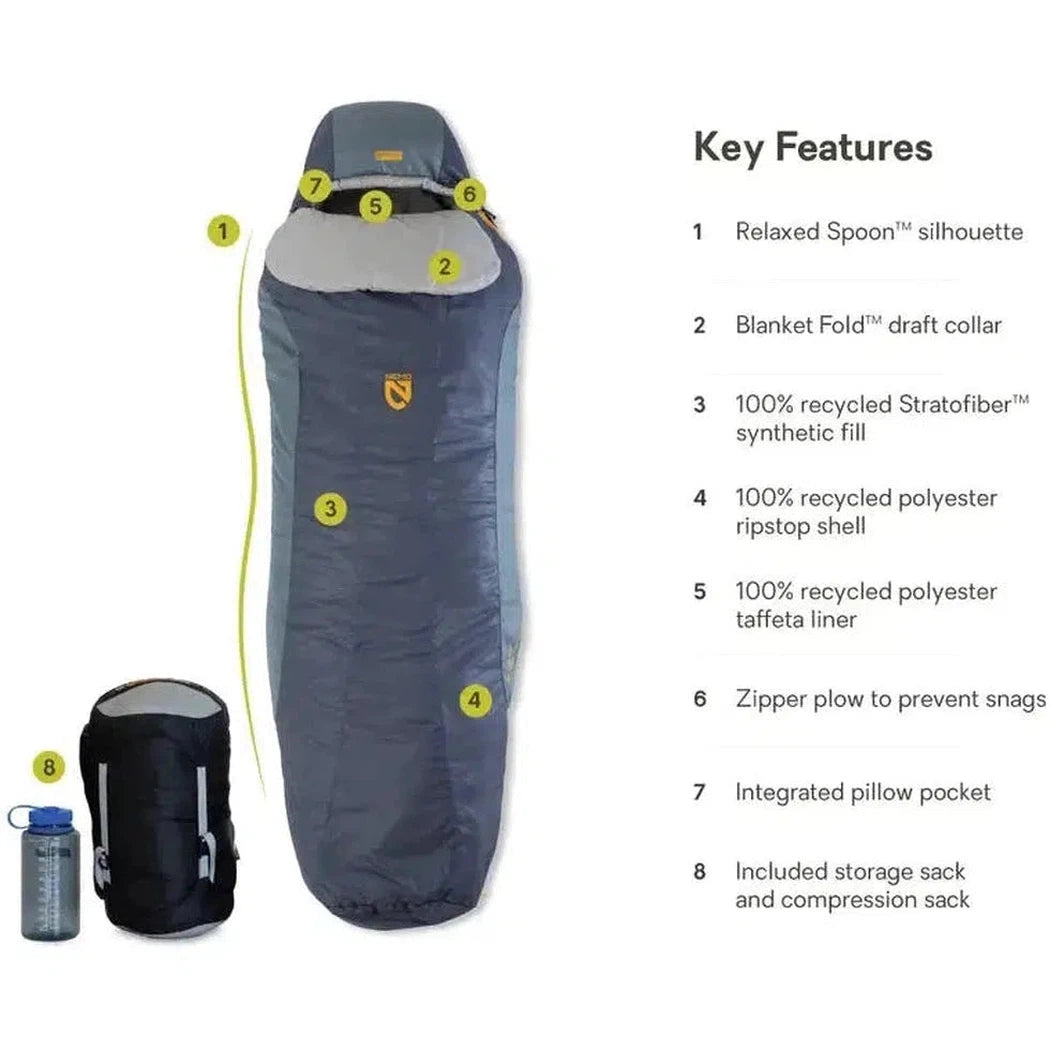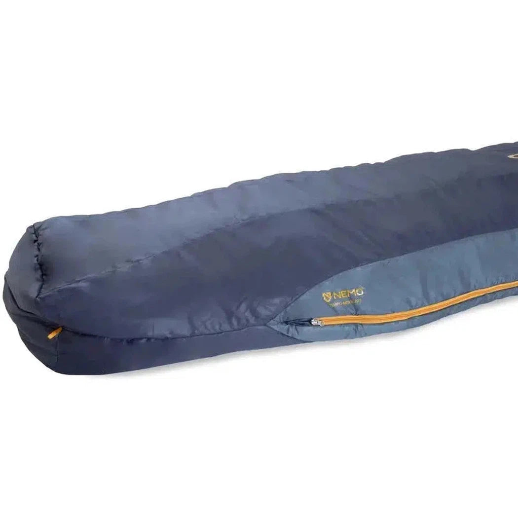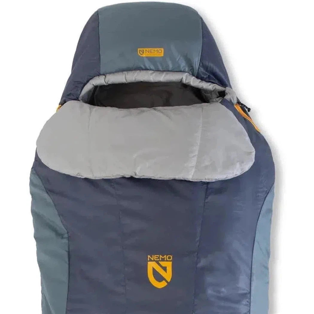 Tempo blends roomy comfort with NEMO's space-saving Spoonâ„¢ shape for a relaxed, crowd-pleasing fit that packs smaller than a rectangular sleeping bag. With a generous cut at the elbows and knees, side sleepers can shift positions comfortably throughout the night.