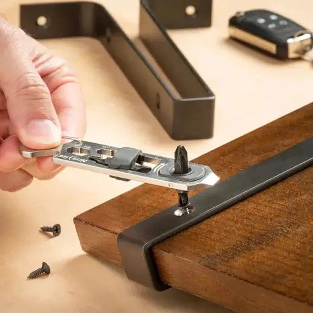 On top of 4 total bits and a dual-sided ratchet, the DoohicKey Ratchet Tool packs in a bottle opener to keep you hydrated while working, a standard/metric ruler and wrenches for DIY backup, a scoring point for opening boxes, and a pry tool for wedging open paint cans, screens, and more.