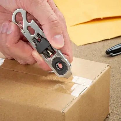 From work fixups to on-the-go repairs, the DoohicKey Ratchet Tool is your secret weapon. Packing in a full-service ratchet with one side for tightening and the other for loosening, this tool travels with you thanks to its included carabiner clip, staying attached to your keys, toolbelt, and more. On top of portability, the compact design of the ratchet allows you to squeeze into small or awkward spaces with ease, taking on virtually any screw in virtually any location. Integrated into the tool itself is an inner rubber bit holder, which you can rotate out to access your bits, or remove fully to swap bits as needed. The bit holder comes fully stocked with two flathead bits at 3.5 and 5.5 mm, and two Phillips bits - #1 and #2. But wait, there's more!