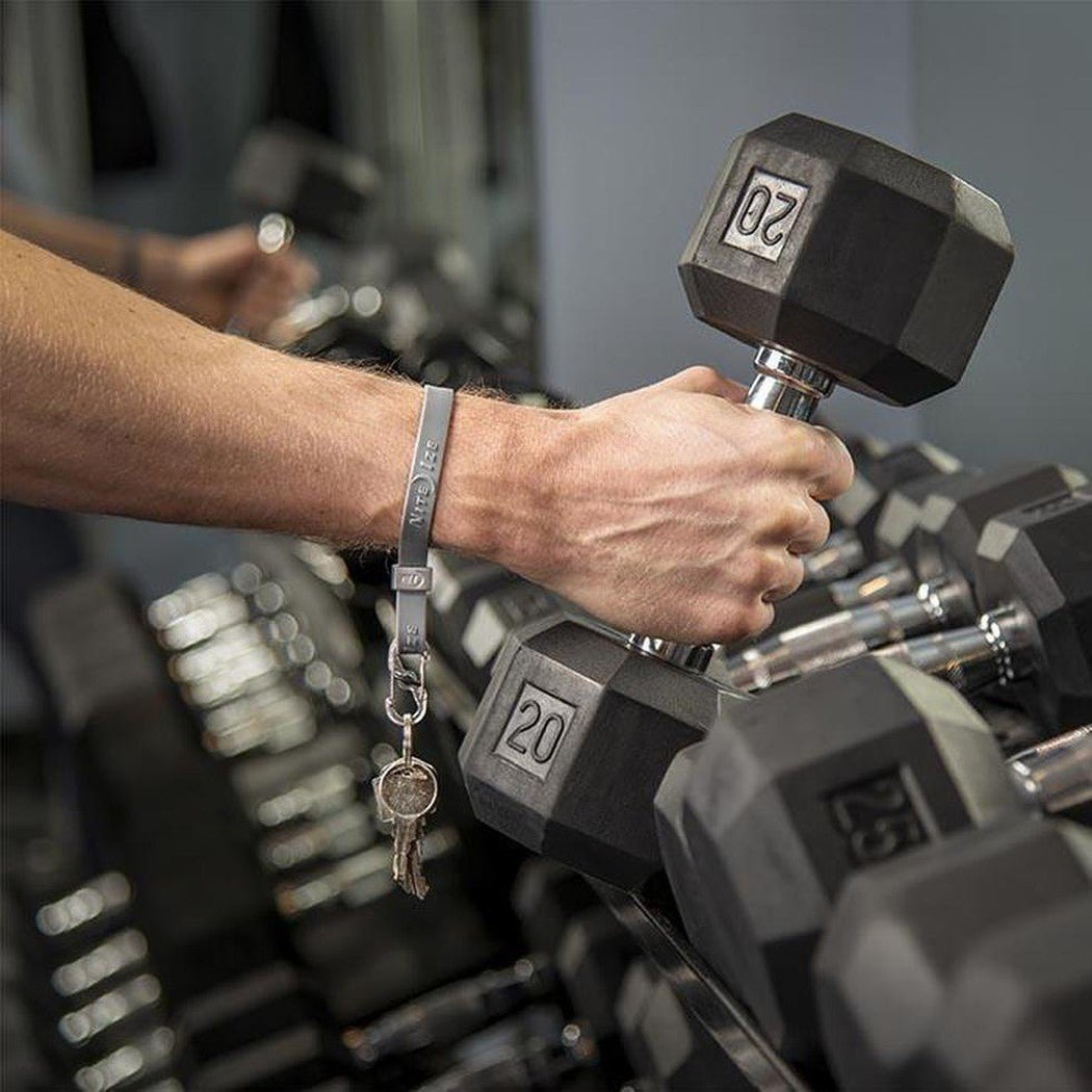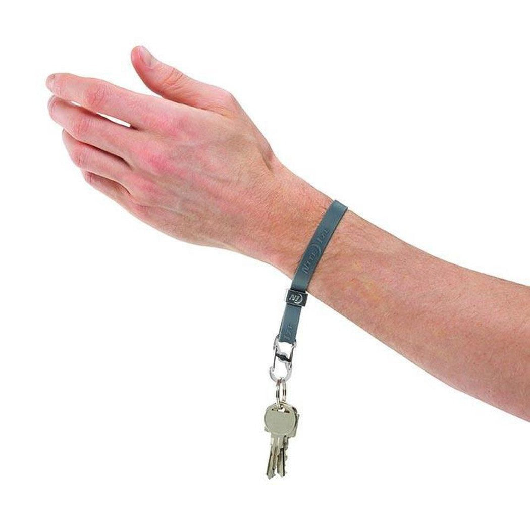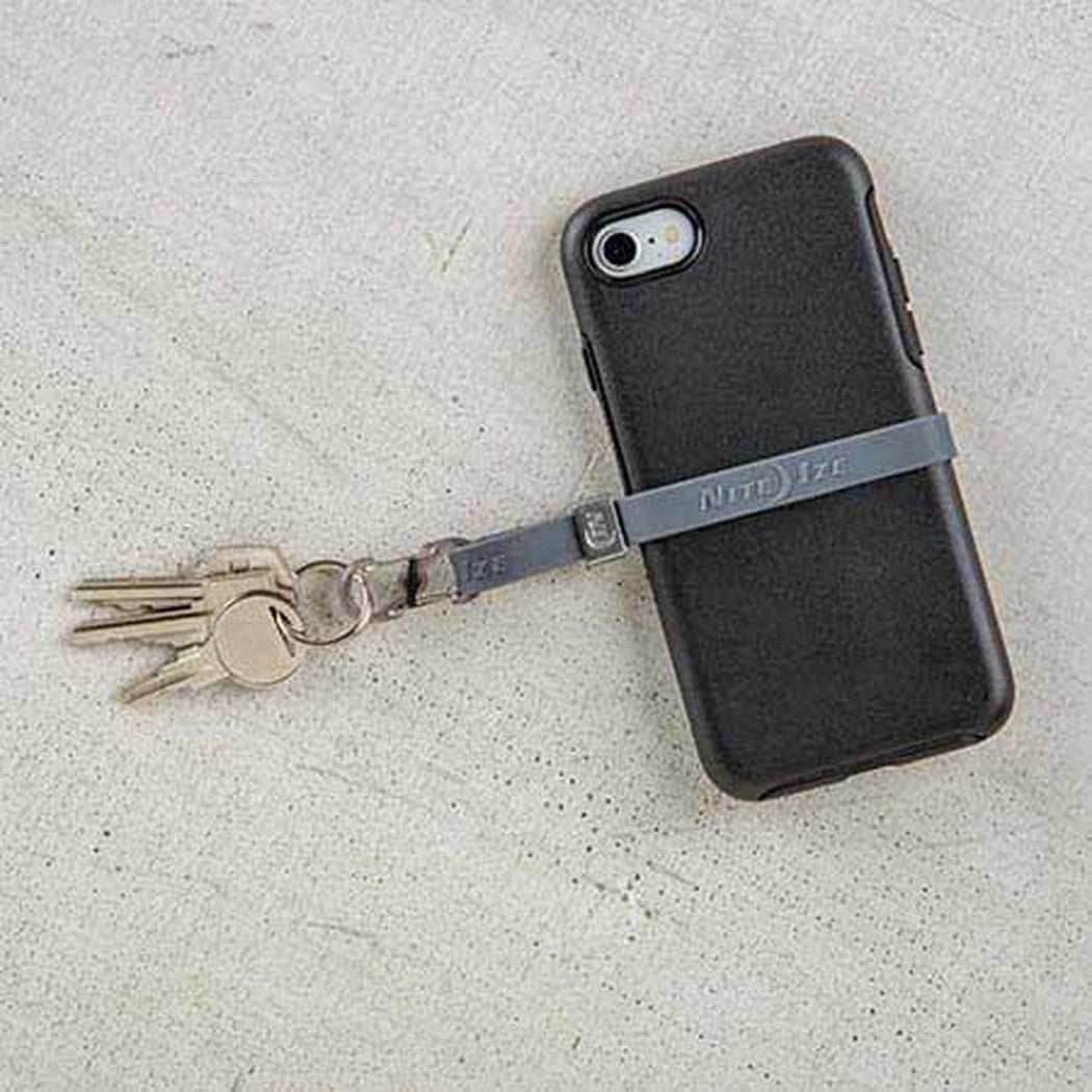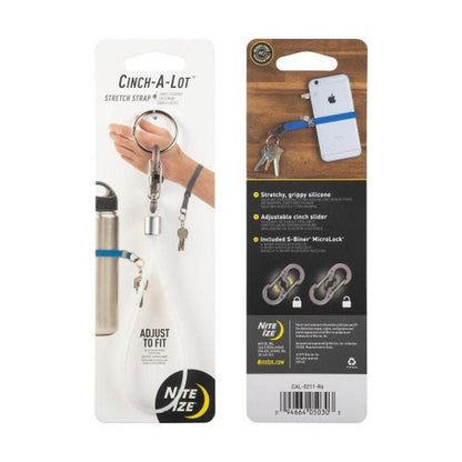 The Cinch-A-Lot is a grippy, stretchy silicone strap equipped with a polycarbonate S-Biner MicroLock and a split ring to keep keys and other small items connected to each other and/or to you. The soft silicone strap can slide over your wrist, wrap around your water bottle, or be snugged around small items by using the cinch slider to keep them attached to your keys. The included S-Biner Microlock allows for quick connection between the strap and split ring, making it an ideal place to keep keys to which you need frequent access, or for key-holding when you need to be hands free.