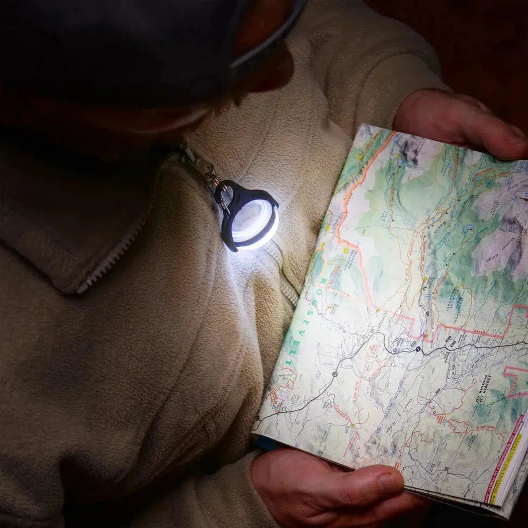Spend every nite under the glow of your own moon. This micro lantern clips to zippers, tents, and more for hands-free lighting, featuring a 360° swiveling body and rapid micro-USB recharging.