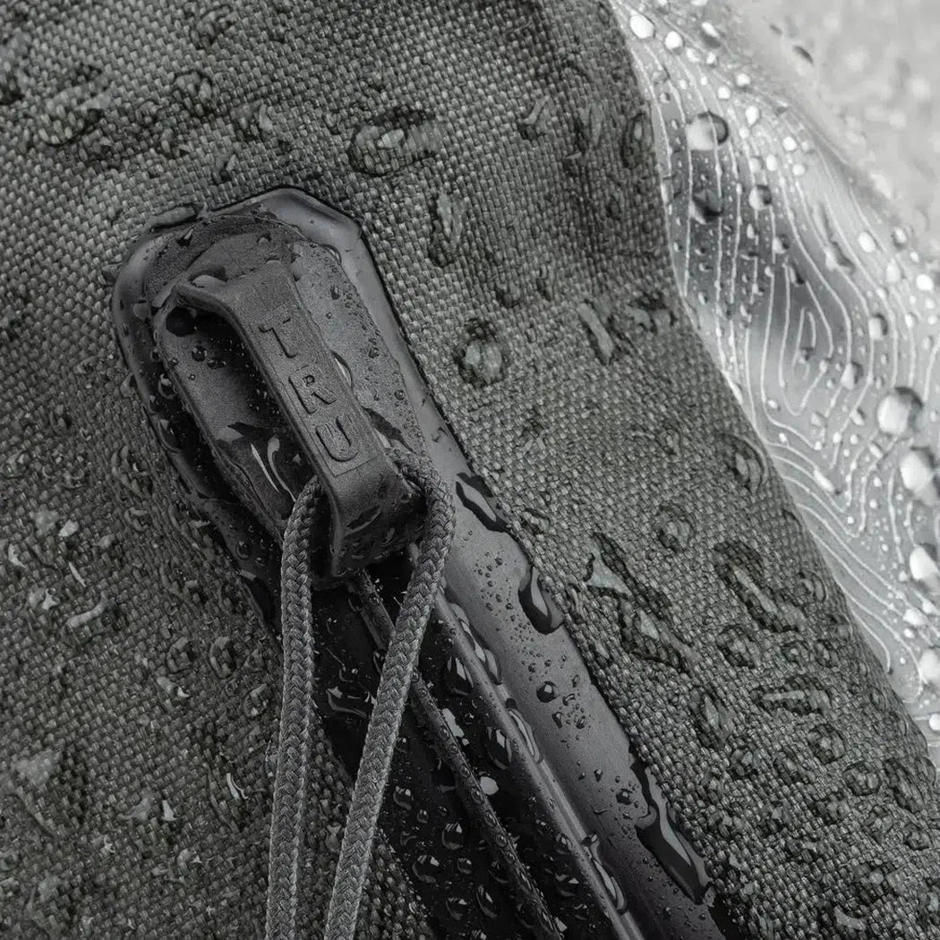 Correct use: To close TRU Zip zipper, move slider slowly and pull firmly to lock into zipper end-stop. If slider is not fully closed, zipper will not seal as intended. Test the RunOff bag for waterproofness periodically by submerging after sealing the TRU Zip zipper. Do not use if bubbles escape the bag during testing.