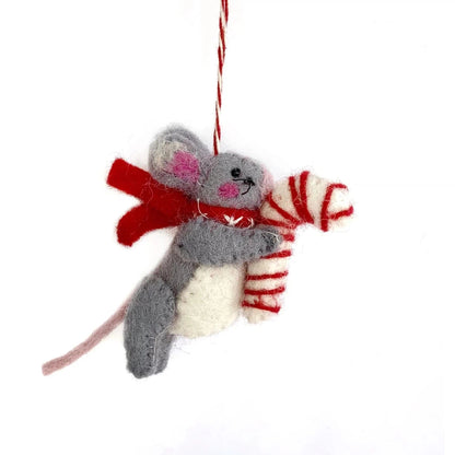 Ornaments 4 Orphans Mouse with Candy Cane Felt Wool Christmas Ornament