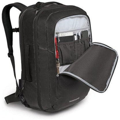 - Lower 2/3 panel has zippered mesh cover and compression straps to hold clothes flat