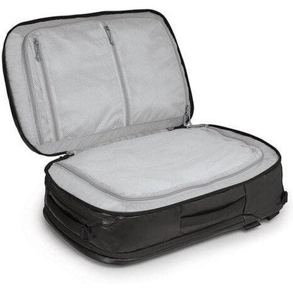 - Main bag is divided 1/3, 2/3 by a main zip and opens fully flat for easy packing