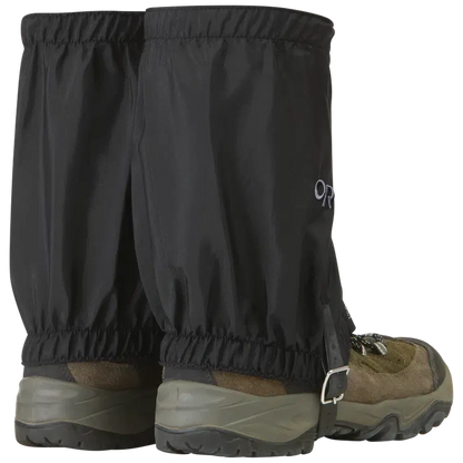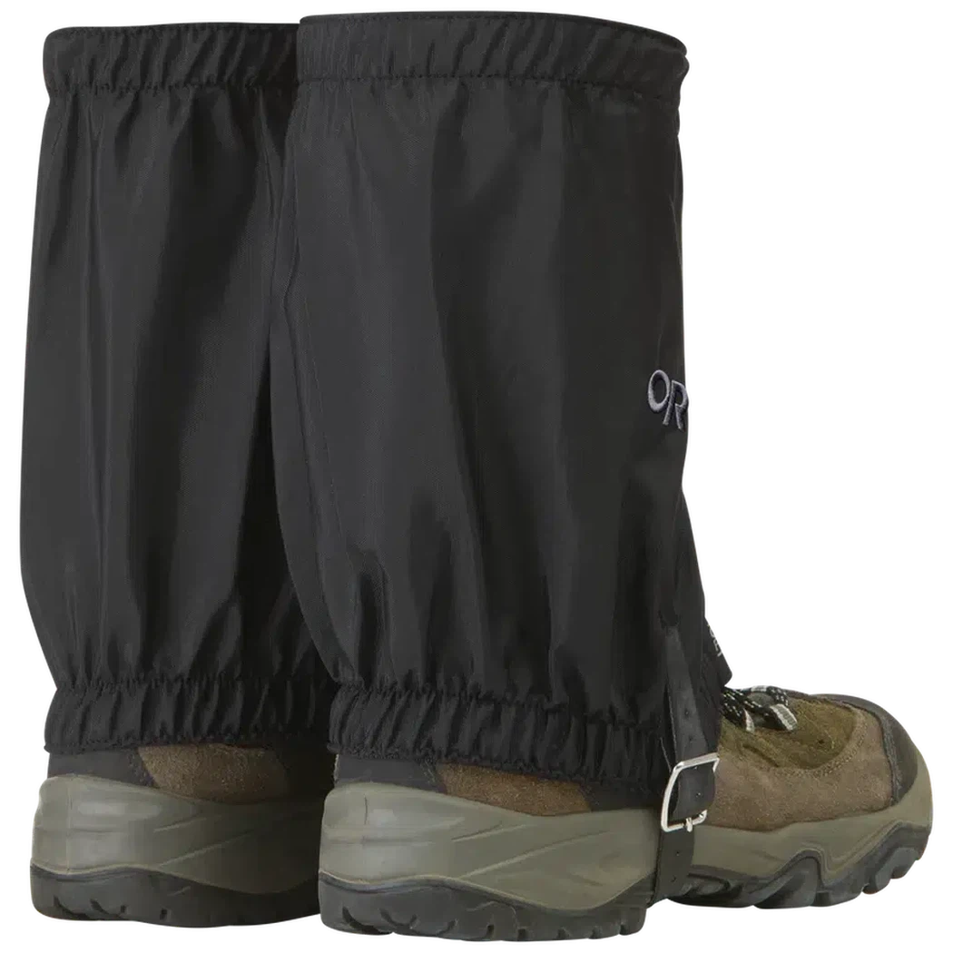These breathable gaiters protect legs from Abrush, rocks, and other obstacles while traveling on or off trail. The 100% nylon fabric is tough and abrasion-resistant, and the polyurethane coating adds an extra layer of protection against moisture. Boot lace hooks, an elastic bottom edge, and a durable Hypalon instep strap keep the gaiters in place while in use, while the top closure buckle ensures a snug fit.